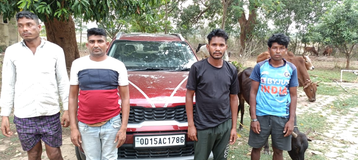 21 नग गौ वंश के साथ 4 आरोपी गिरफ्तार , सोनेट कार जब्त