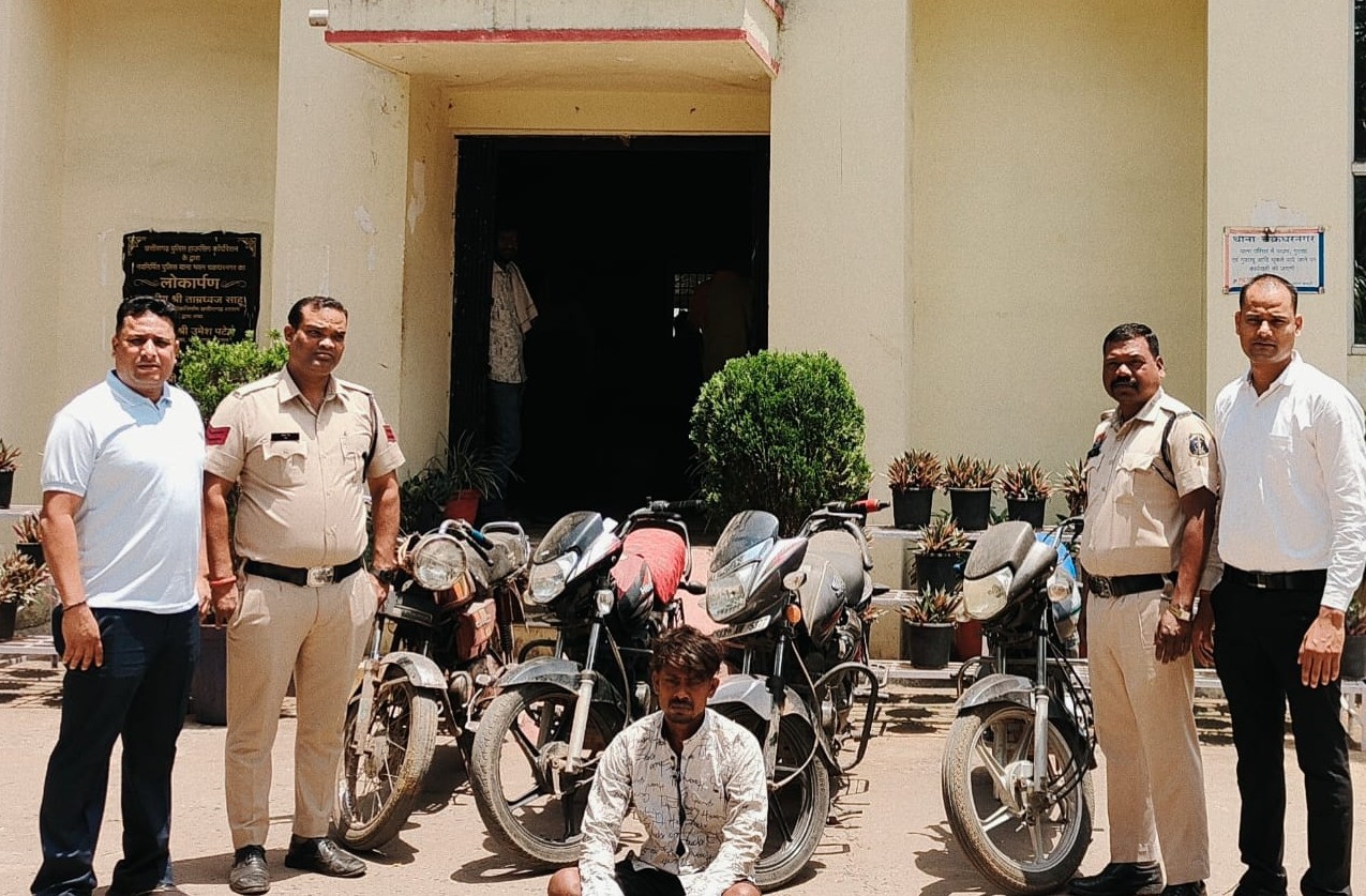 पुलिस की लगातार कार्यवाही , आज फिर चार बाइक के साथ चोर गिरफ्तार