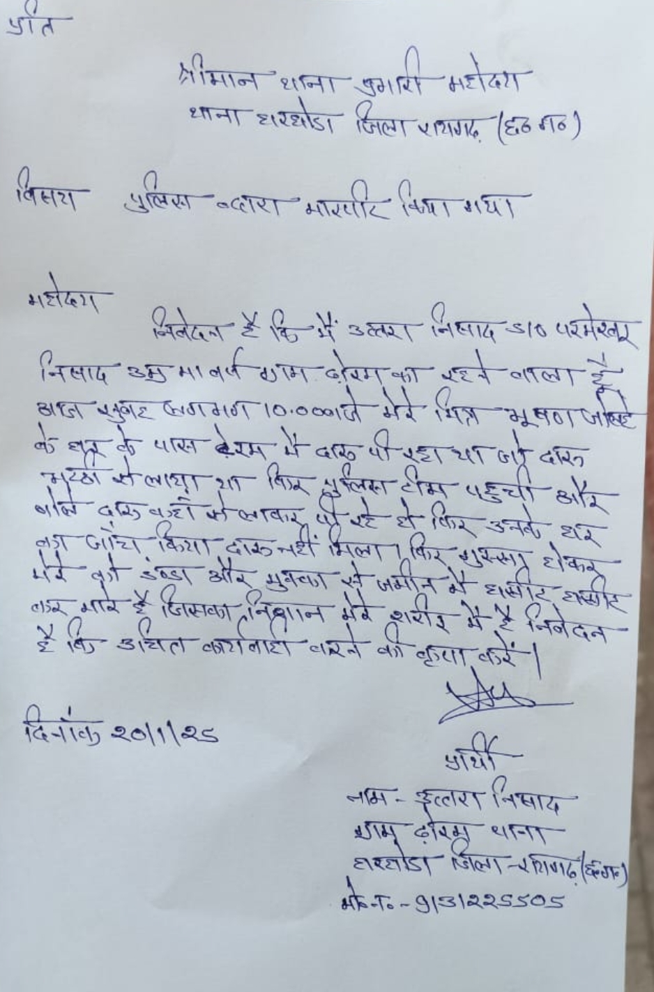 पुलिस द्वारा मारपीट का आवेदन वायरल , बना चर्चा का विषय