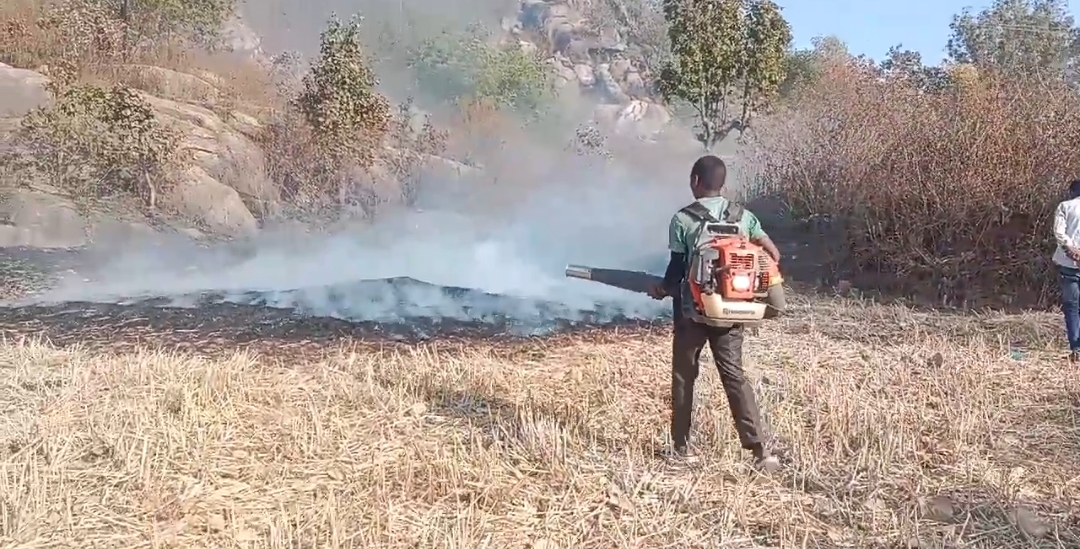 जंगल में लगी आग पर घंटो कि कड़ी मस्कत के बाद पाया काबू