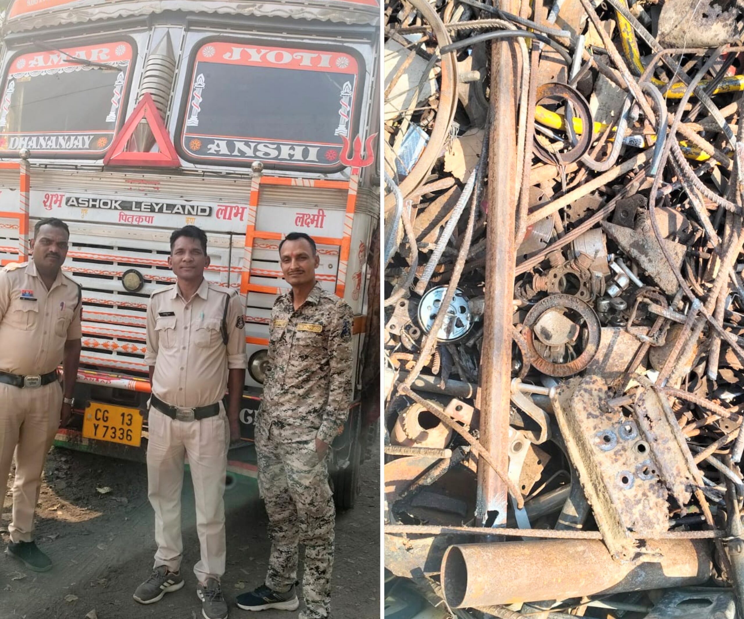 desk khabar khuleaam 9 मार्च घरघोड़ा पुलिस ने अवैध कबाड़ परिवहन के खिलाफ कार्रवाई करते हुए 13 टन कबाड़ समेत ट्रक जब्त कर चालक ...