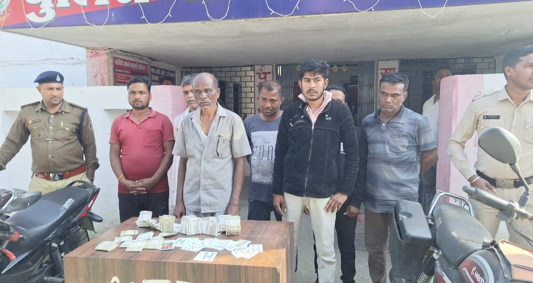 आदतन जुआरी ‘ बुंदेल ‘ समेत 7 गिरफ्तार , 1.02 लाख और 6 मोटरसाइकिल जब्त