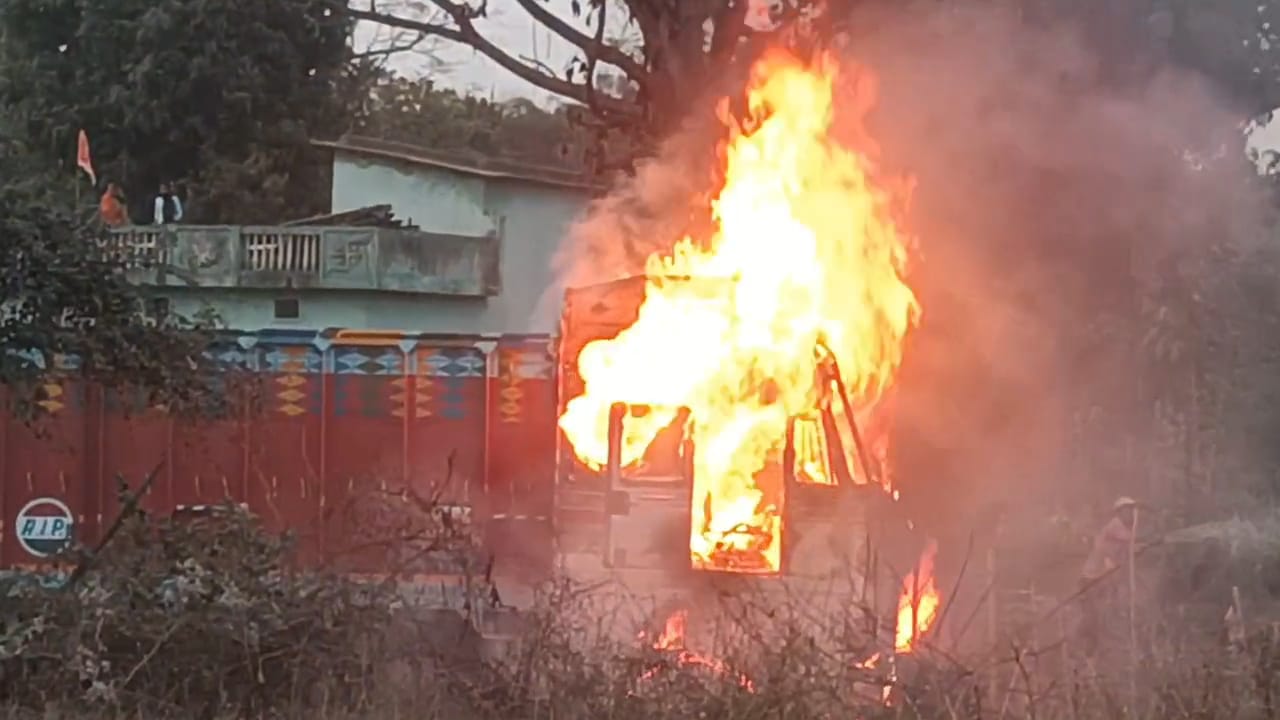 चावल से भरी ट्रक धू धू कर जलने लगी, ड्राइवर ने …