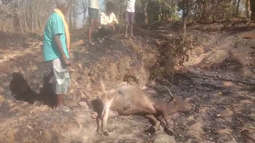 अज्ञात व्यक्ति के लगाई आग में गौ वंश कि हुई मौत