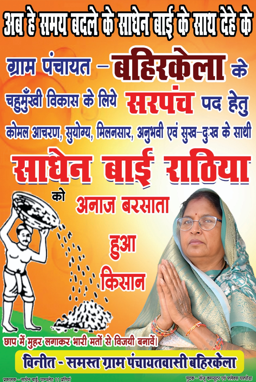 सरपंच प्रत्याशी साधेन बाई को जनता का मिल रहा एक तरफा समर्थन , जीत कि ….