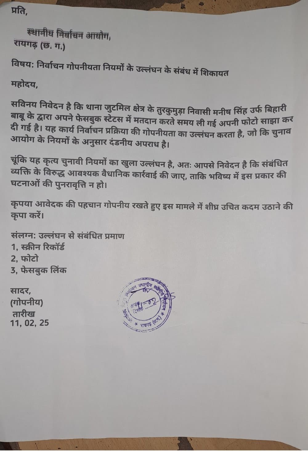 खबर खुलेआम रायगढ़ – लोकतंत्र की सबसे अहम प्रक्रिया, मतदान, की गोपनीयता बनाए रखना अनिवार्य है। लेकिन हाल ही में एक फोटो सोशल मीडिया ...
