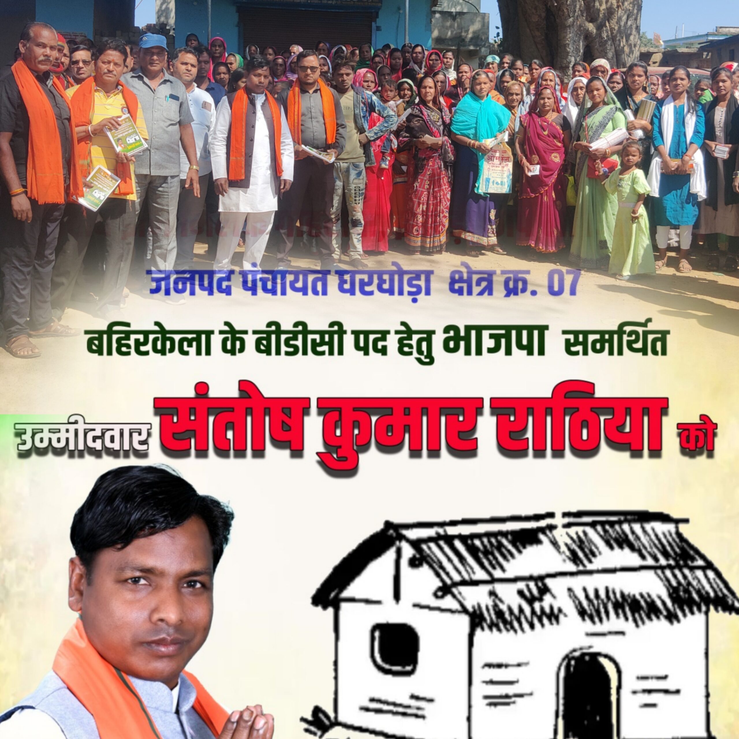 डेस्क खबर खुलेआम निकाय चुनाव के बाद त्रिस्तरीय चुनाव की सरगर्मी बढ़ गई है घरघोड़ा जनपद पंचायत क्षेत्र के 07 से भा.ज.पा. समर्थित जनपद ...