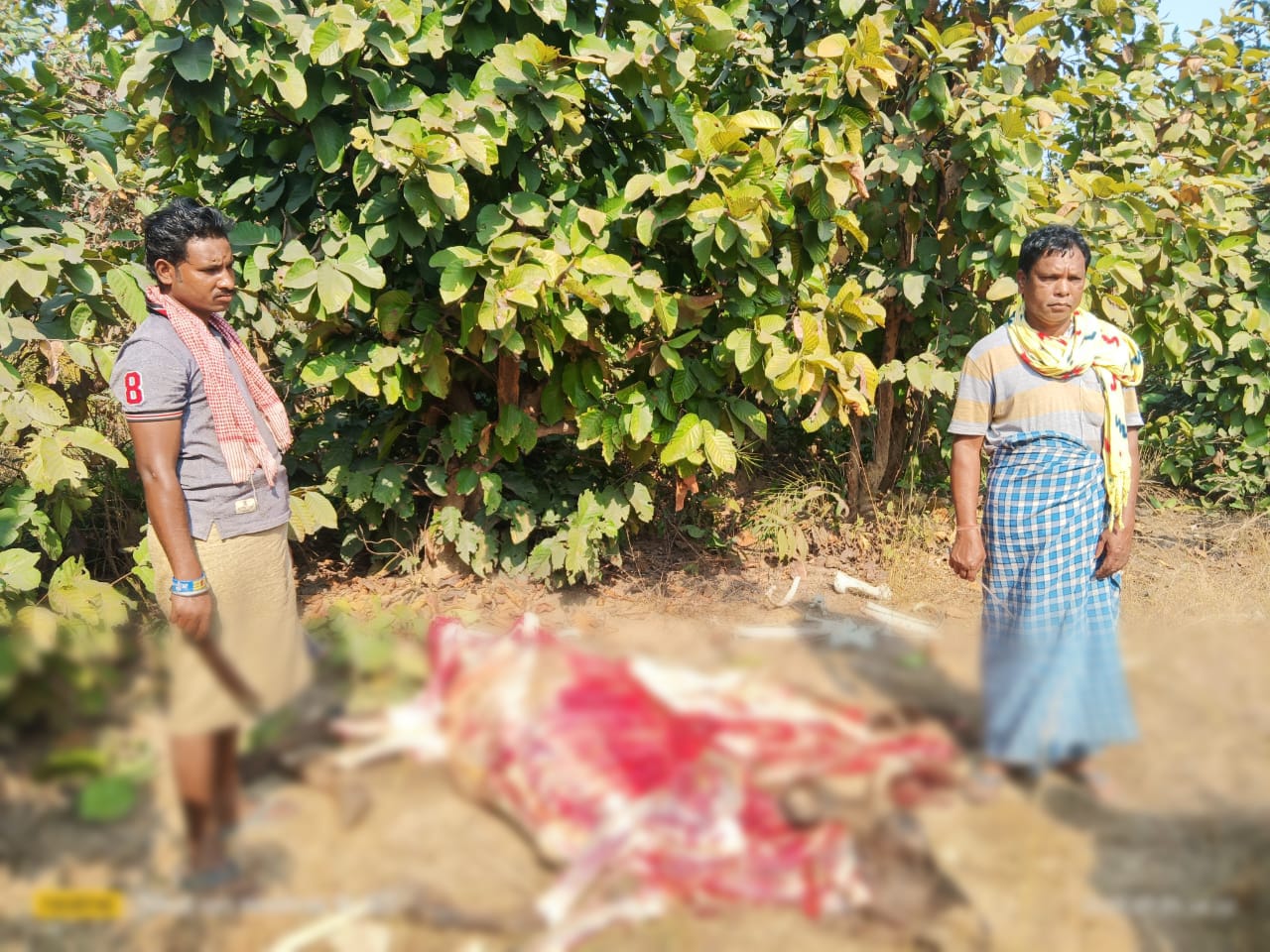 जंगल में गौ हत्या करने वाले को ग्रामीणों ने पकड़ा , किया पुलिस के हवाले