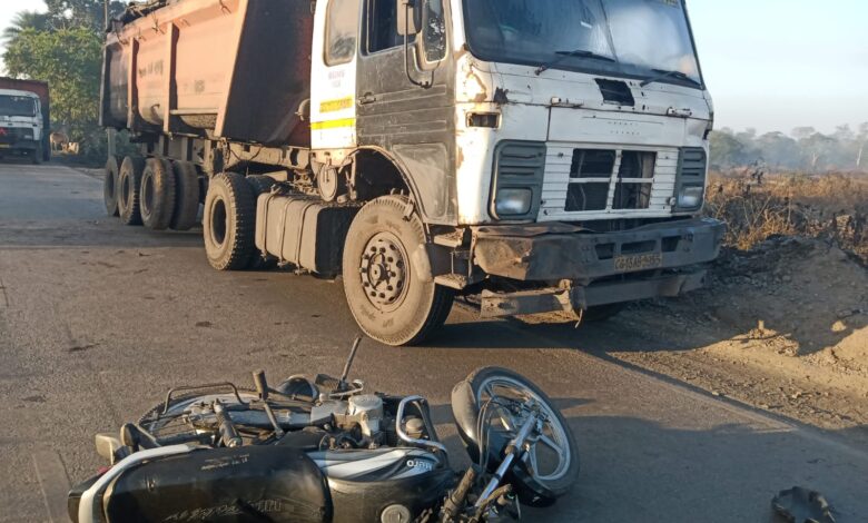 ट्रेलर की टक्कर से बाइक सवार को मारी टक्कर , हालत गंभीर , ग्रामीणों ने किया चक्का जाम”