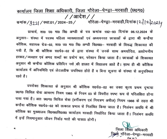 डेस्क खबर खुलेआम मरवाही ब्लॉक के स्कूल में पदस्थ कर्मचारी को निलंबित कर दिया गया है. सालों से स्कूलों से नदारद रहने वाले गौरेला ...