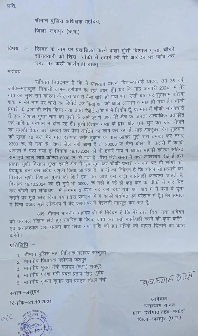 desk khabar khuleaam गणेश भोय तमता जशपुर – थाने में पदस्थ मुंशी के द्वारा वर्दी का रौब दिखाकर अवैध वसूली किये जाने का गम्भीर ...