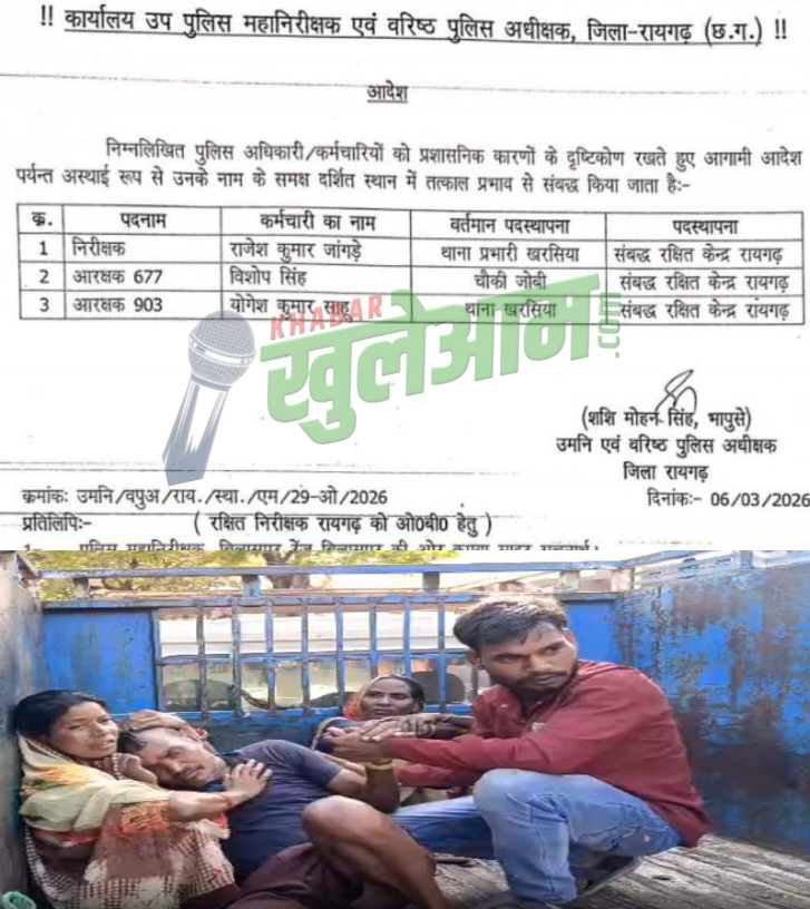 खबर खुलेआम रायगढ़, 07 मार्च* । वरिष्ठ पुलिस अधीक्षक श्री शशि मोहन सिंह के दिशा निर्देशन पर थाना चक्रधरनगर क्षेत्र में वृद्ध महिला के ...