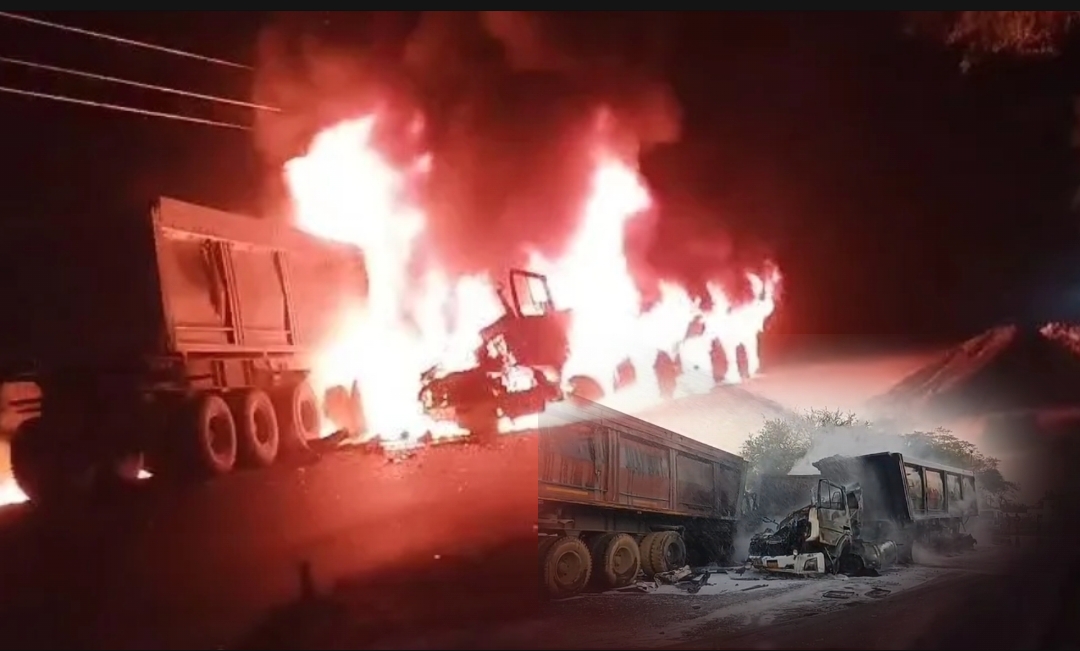 तीन ट्रेलर भिड़े, आग का गोला बने वाहन .. एक चालक जिंदा जला, दूसरा गंभीर