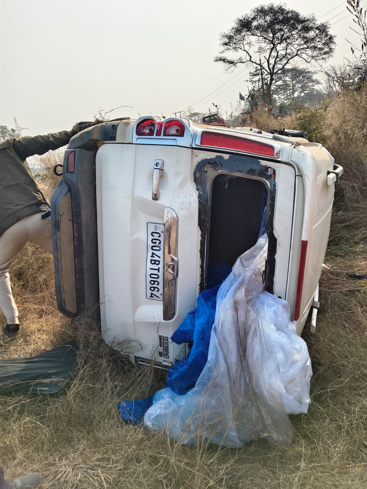 पुलिस से भाग रही संदिग्ध स्कॉर्पियो पलटी .. गाडी से डीजल प्लास्टिक पाइप सब्बल फर्जी नंबर प्लेट ….