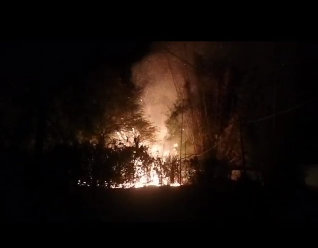 बांस के पेड़ पर रात में लगी भीषण आग , थाना प्रभारी की सूझबूझ से बड़ा हादसा टला