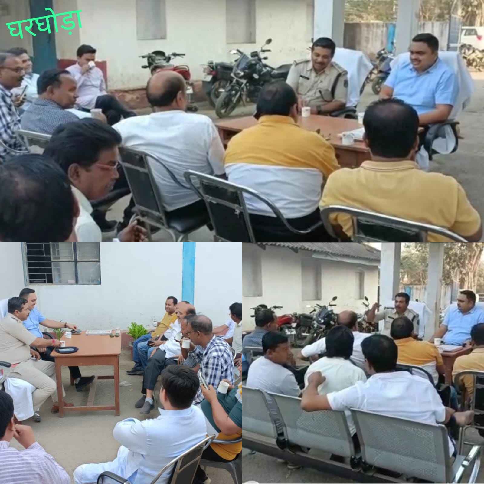 एसडीओपी दीपक मिश्रा ने आज घरघोड़ा थाना में शांति समिती की बैठक ली , सौहार्दपूर्ण वातावरण में त्योहार मनाने किया अपील