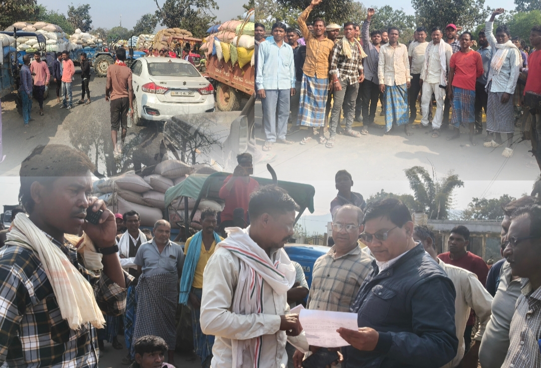 धान खरीदी को लेकर आक्रोषित किसान सड़क में उतरे .. किया चक्का जाम .. नायब तहसीलदार मौके पर