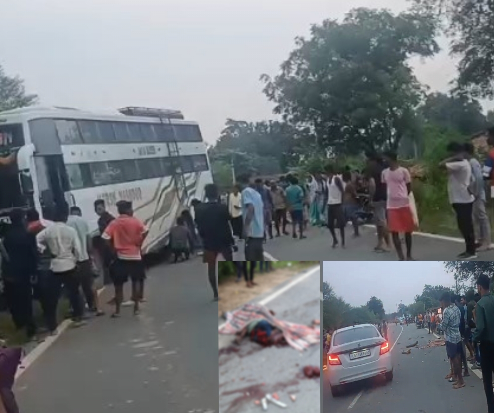 तेज रफ़्तार बस ने बाइक सवार दो लोगों को मारी टक्कर … पुरुष के सड़क मे बिखरे शव , महिला का अस्पताल मे ….