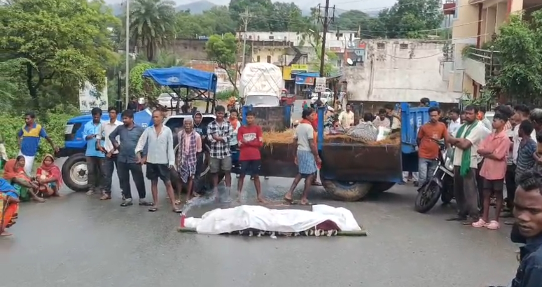 तीन युवाओं कि मौत से गुस्साए ग्रामीणों ने शव को सडक मे रख किया जाम , पुलिस मौके पर मौजूद