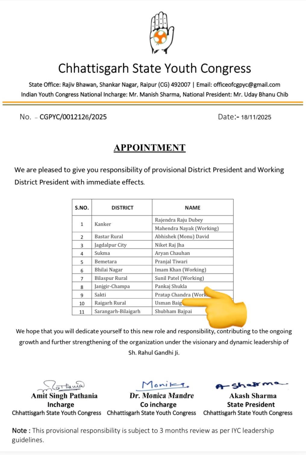युवा कांग्रेस को मिला नया जिला अध्यक्ष , पार्टी ने इस धाकड़ युवा नेता को सौपी जिले कि कमान