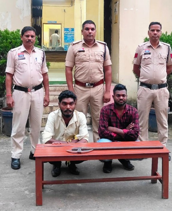 मेला में फरसा लहराते दो बदमाश गिरफ्तार
