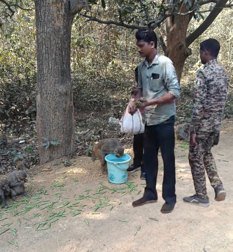 इंसानियत की खूबसूरत तस्वीर .. बंदरों को मटर खिलाकर पानी पिलाते नजर आये पुलिस जवान …