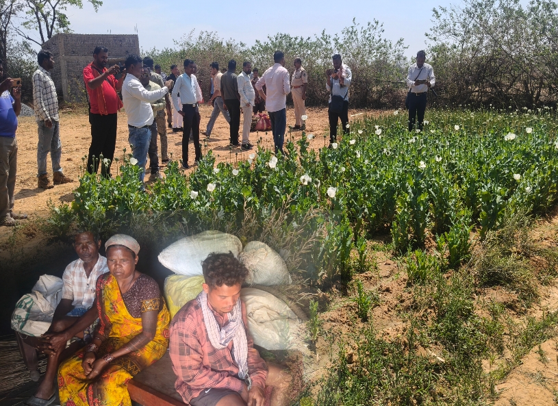 दूसरी अफीम की खेती का बड़ा खुलासा .. तमनार के बाद अब .. दो आरोपी हिरासत मे .. एसडीओपी सहित एफएसएल कि टीम मौके पर