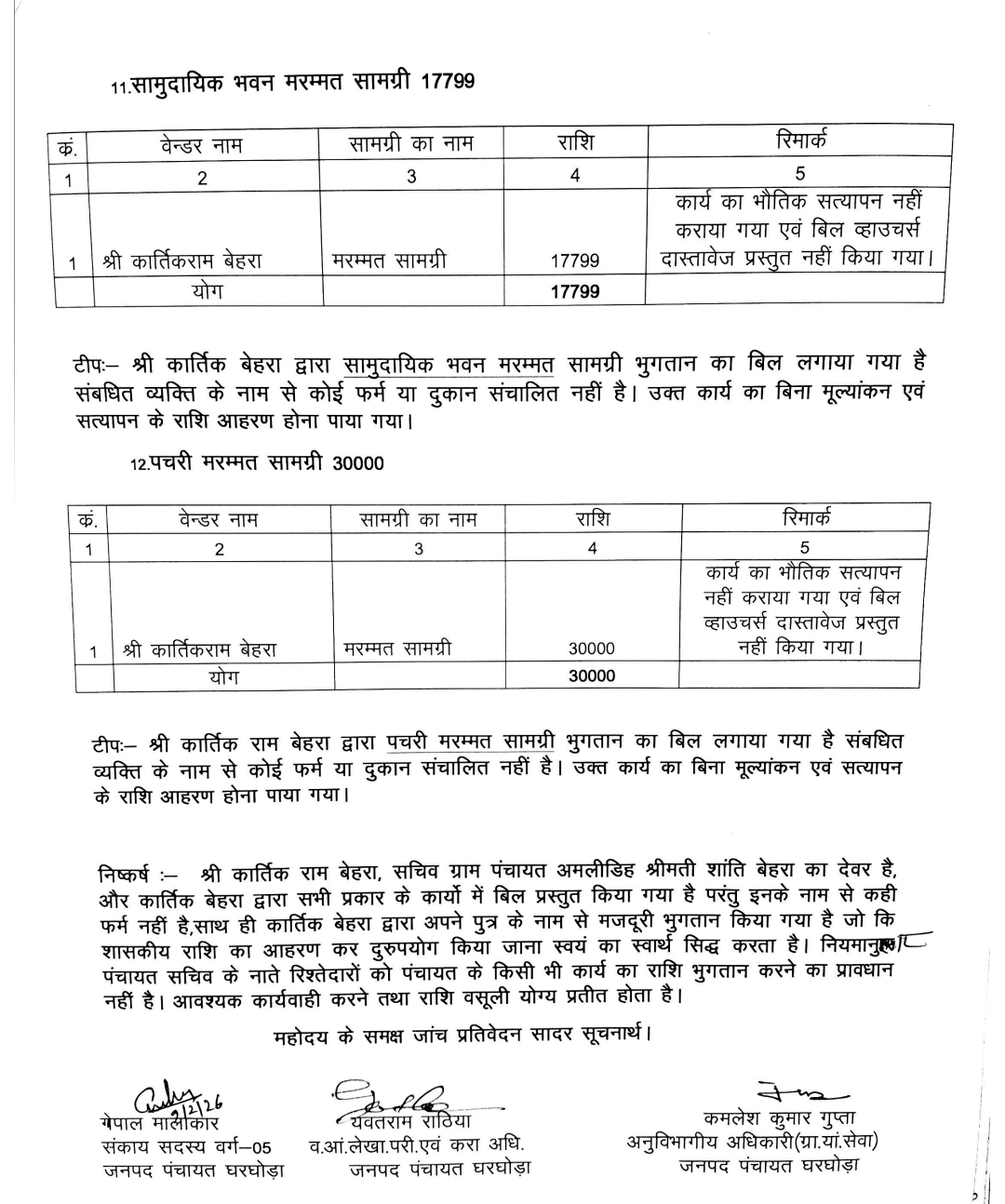 घरघोड़ा। शासन-प्रशासन की पारदर्शिता पर सवाल खड़ा करने वाला एक अजीबोगरीब मामला ग्राम पंचायत अमलीडीह से सामने आया है, जहां जांच रिपोर्ट ” भेजी भी गई” और “मिली भी नहीं” और इसी के बीच पूरा मामला रहस्य बन गया है। मामला तब शुरू हुआ जब रायगढ़ जिला कलेक्टर के जनदर्शन में अमलीडीह के तत्कालीन सचिव शांति बेहरा के खिलाफ गंभीर आर्थिक अनियमितताओं की शिकायत दर्ज कराई गई। कलेक्टर के निर्देश पर जांच के आदेश दिए गए। जांच टीम ने कागजी प्रक्रिया पूरी कर रिपोर्ट तैयार की लेकिन इसके बाद कहानी ने ऐसा मोड़ लिया कि अब हर विभाग अपनी-अपनी अलग कहानी सुना रहा है।
