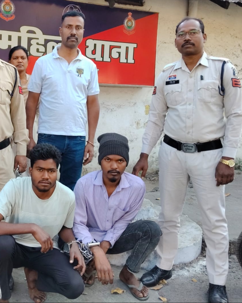 महिला थाना में दिनांक 14 फरवरी 2026 को पीड़िता की मां द्वारा रिपोर्ट दर्ज कराई गई कि दिनांक 13 फरवरी 2026 की रात्रि करीब 11:30 बजे गांव का रोहन उरांव और पवन कुमार मिंज घर के पीछे से उनके मकान में घुसकर कमरे में सो रही उसकी नाबालिग बालिका के साथ गलत नियत से छेड़खानी करने लगे। बालिका के चिल्लाने पर परिजन जाग गए और आसपास के लोग मौके पर पहुंच गए, जिन्हें देखकर दोनों आरोपी छिप गए। पड़ोसियों द्वारा पकड़ने का प्रयास करने पर आरोपी हाथ छुड़ाकर जंगल की ओर भाग गए। प्रार्थिया की रिपोर्ट पर *महिला थाना में अप.क्र. 10/2026 धारा 331(4), 74, 75(2), 3(5) बीएनएस 8 पॉक्सो एक्ट के तहत अपराध पंजीबद्ध कर विवेचना में लिया गया। घटना की गंभीरता को देखते हुए थाना प्रभारी उप निरीक्षक दीपिका निर्मलकर द्वारा तत्काल वरिष्ठ अधिकारियों को अवगत कराकर उनके मार्गदर्शन में पीड़िता का मेडिकल परीक्षण कराया गया तथा आरोपियों की गिरफ्तारी के लिए टीम गठित कर संभावित ठिकानों पर दबिश दी गई। पुलिस टीम की सक्रियता से दोनों आरोपियों को शीघ्र ही हिरासत में लेकर पूछताछ की गई, जिसमें उन्होंने अपराध स्वीकार किया। *गिरफ्तार आरोपी (1) रोहन उरांव पिता दिलबंधु उरांव उम्र 20 वर्ष एवं (2) पवन कुमार मिंज पिता स्व. जोहन मिंज उम्र 25 वर्ष, दोनों निवासी उर्दना थाना सिटी कोतवाली रायगढ़ को न्यायालय में प्रस्तुत कर न्यायिक रिमांड पर भेजा गया है।
