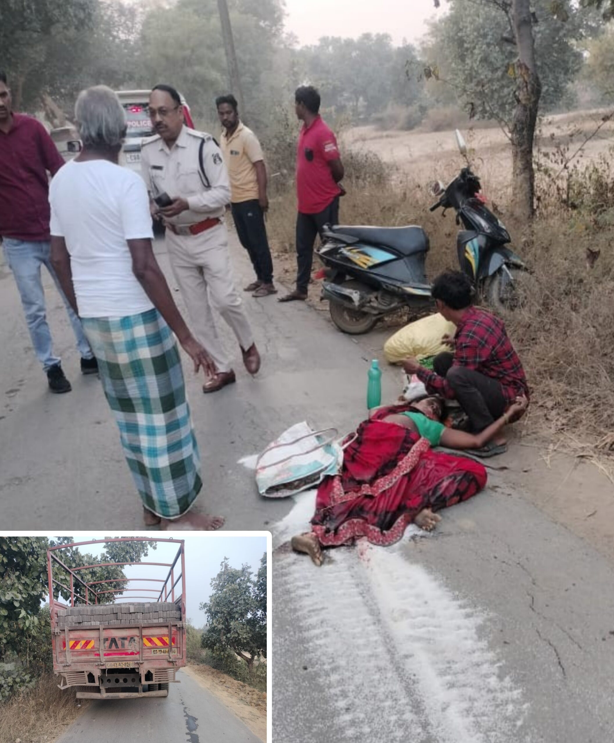 उसी समय रेंगालबाहरी बरकसपाली के बीच गायत्री मंदिर के पास काले ईंट से भरी माजदा ट्रक CG13 AJ 8266 ने स्कूटी सवार दम्पति को अपने चपेट में ले लिए।